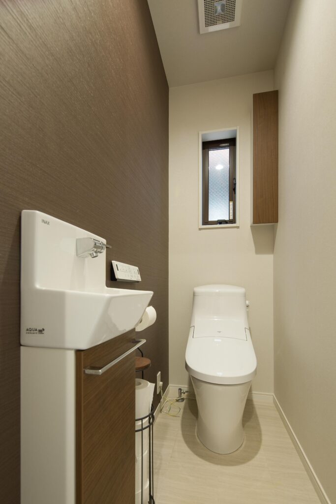内装はブラウンのフローリングやグレーのエコカラットなどで、シックな雰囲気に。