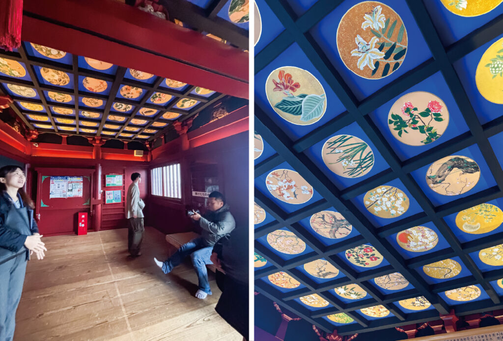 天気の関係で眺望は少し残念でしたが、観音堂の天井を埋め尽くす奉納天井絵がとても美しく、思わず見入ってしまいました。