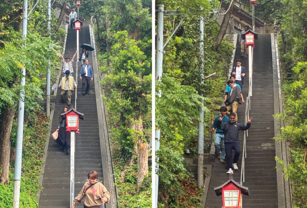 ご利益がありそうな109段の階段を、息を切らしながらも全員でなんとか登りきりました💪