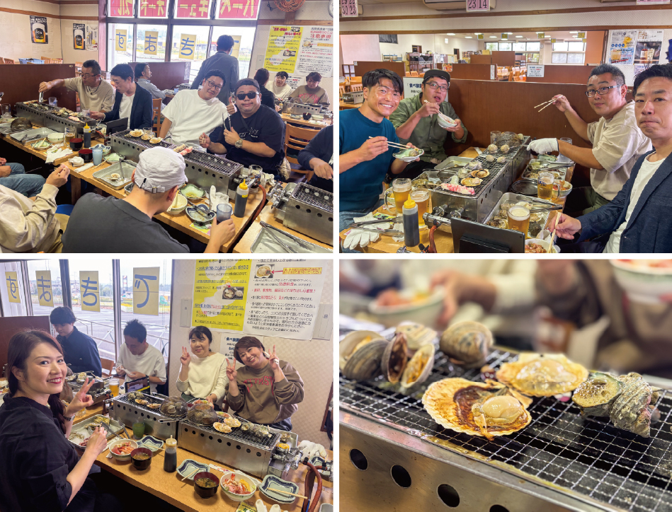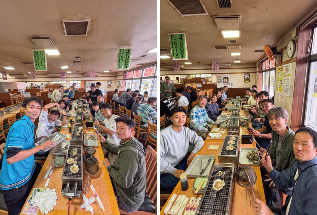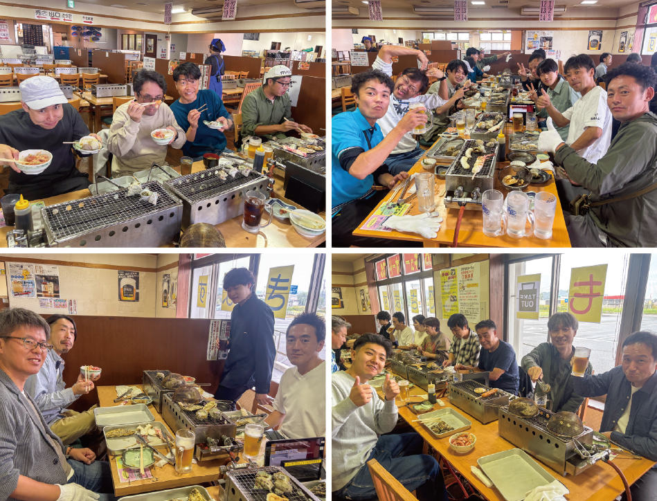 はまぐり・サザエ・ホタテをここぞとばかりに焼いて、香ばしい磯の香りに包まれながら皆さん夢中で堪能しました。