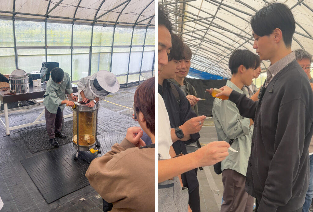 はちみつを絞る工程を見学し、しぼりたてを試食🍯✨