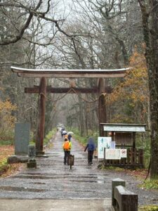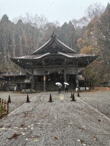 到着した中社は雪が降っていて寒かったです。