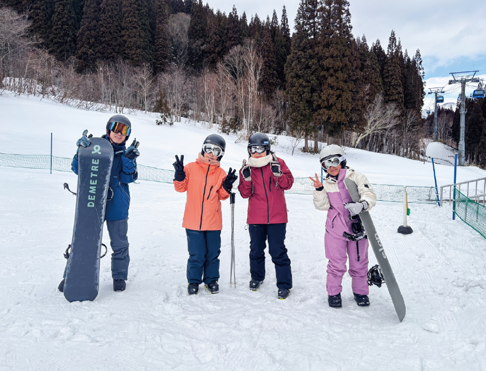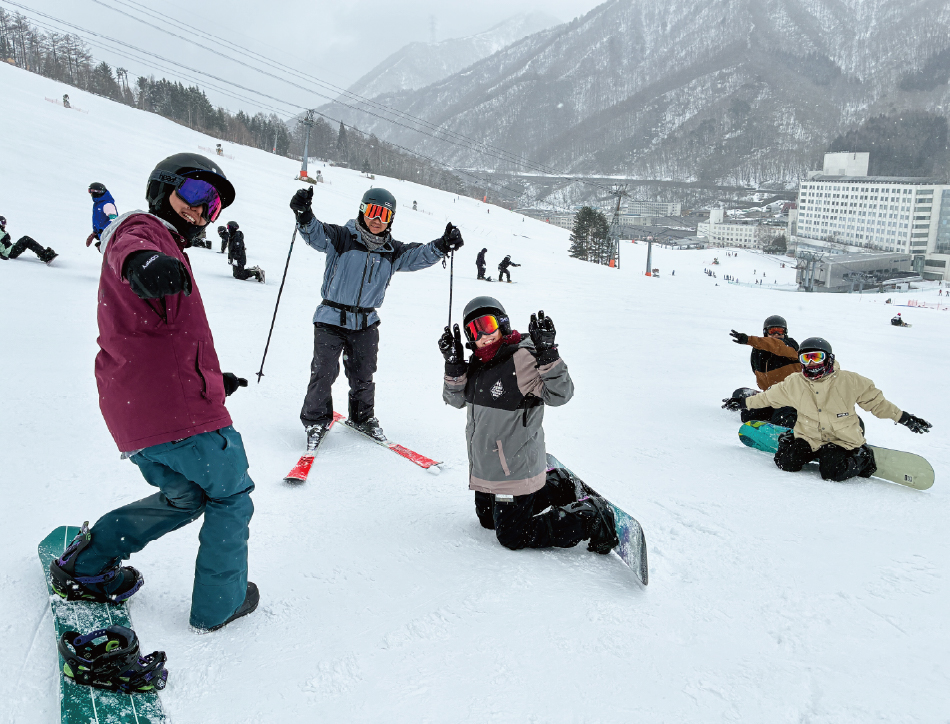 スキーやスノーボードを楽しむメンバーと、新潟観光を楽しむメンバーに分かれ、それぞれ思い思いの時間を過ごしました。