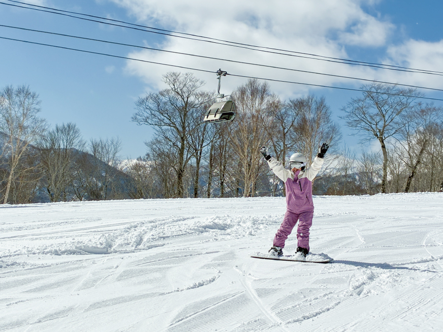 今回はドラゴンドラに乗って隣の広いスキー場へ。