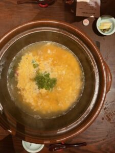 毎回最後に追加注文する締めの雑炊です。うどんも美味しいですがこれがまた絶品です。