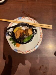 追加注文したウツボのから揚げです皮目にどくとくの香りがあります。