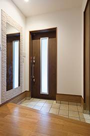 鏡のまわりにはエコカラットを採用。玄関を印象付けるアクセントにもなっています。